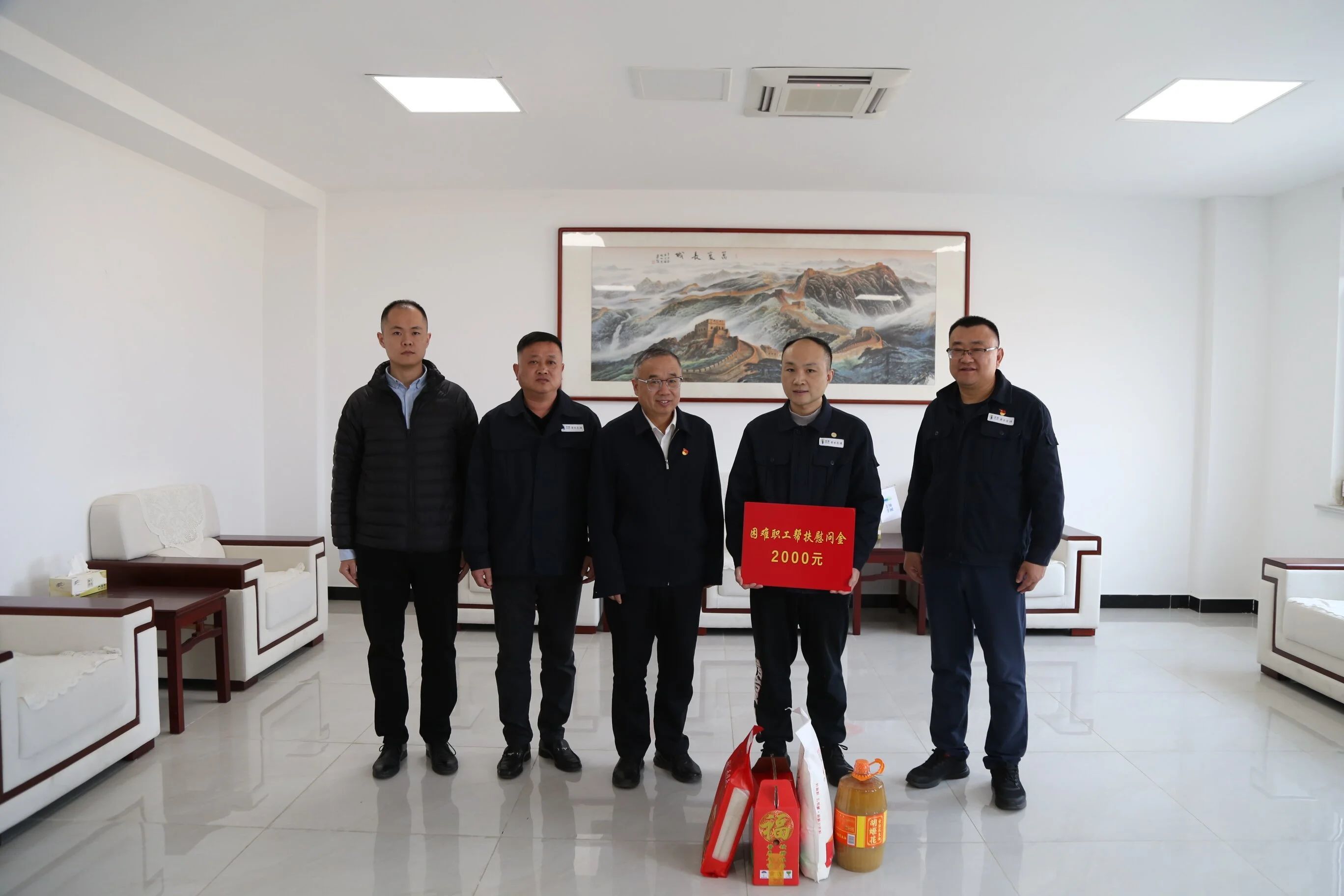 “目前工作生活上有什么困難?家里父母身體怎么樣?要提振信心積極面對,把日子過好?!本渚涫巧?、字字皆關(guān)心。慰問組與困難職工親切交談,詳細詢問當(dāng)前生活和工作情況,鼓勵職工保持樂觀向上的心態(tài),積極面對生活中的困難,并為職工送上米、面、油等慰問品和慰問金,送上新春祝福。