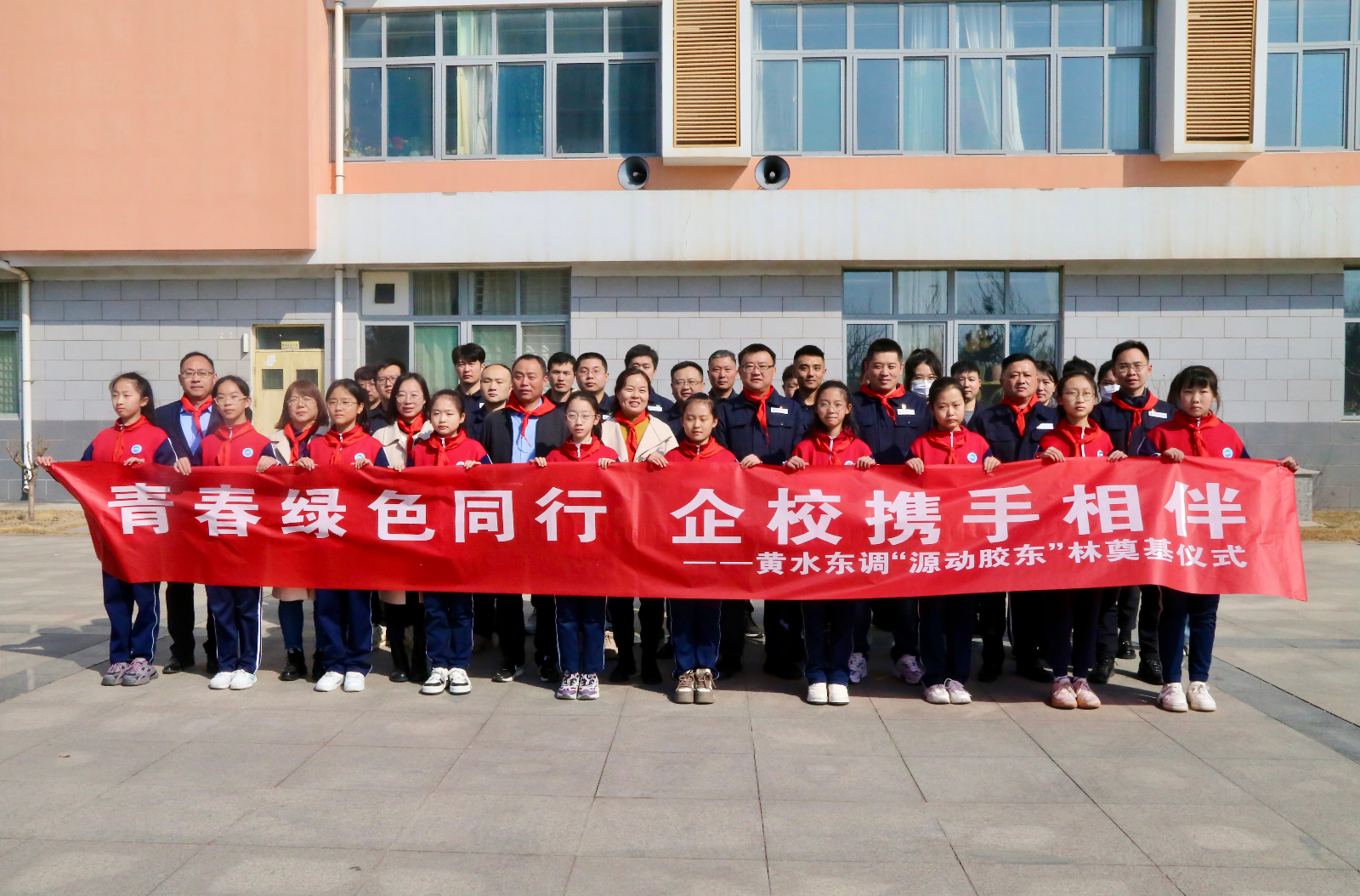 在全國第46個植樹節(jié)到來之際,為深入學習貫徹習近平新時代中國特色社會主義思想,進一步貫徹“綠水青山就是金山銀山”綠色發(fā)展理念。3月12日,黃水東調(diào)黨支部、青年文明號聯(lián)合濰坊藍海學校開展“青春綠色同行,企校攜手相伴”黃水東調(diào)“源動膠東”林奠基儀式。黃水東調(diào)公司黨支部書記、董事長申勇,濰坊藍海學校校長楊偉平,公司黨員和青年代表及學校師生代表共計50余人參加了活動。