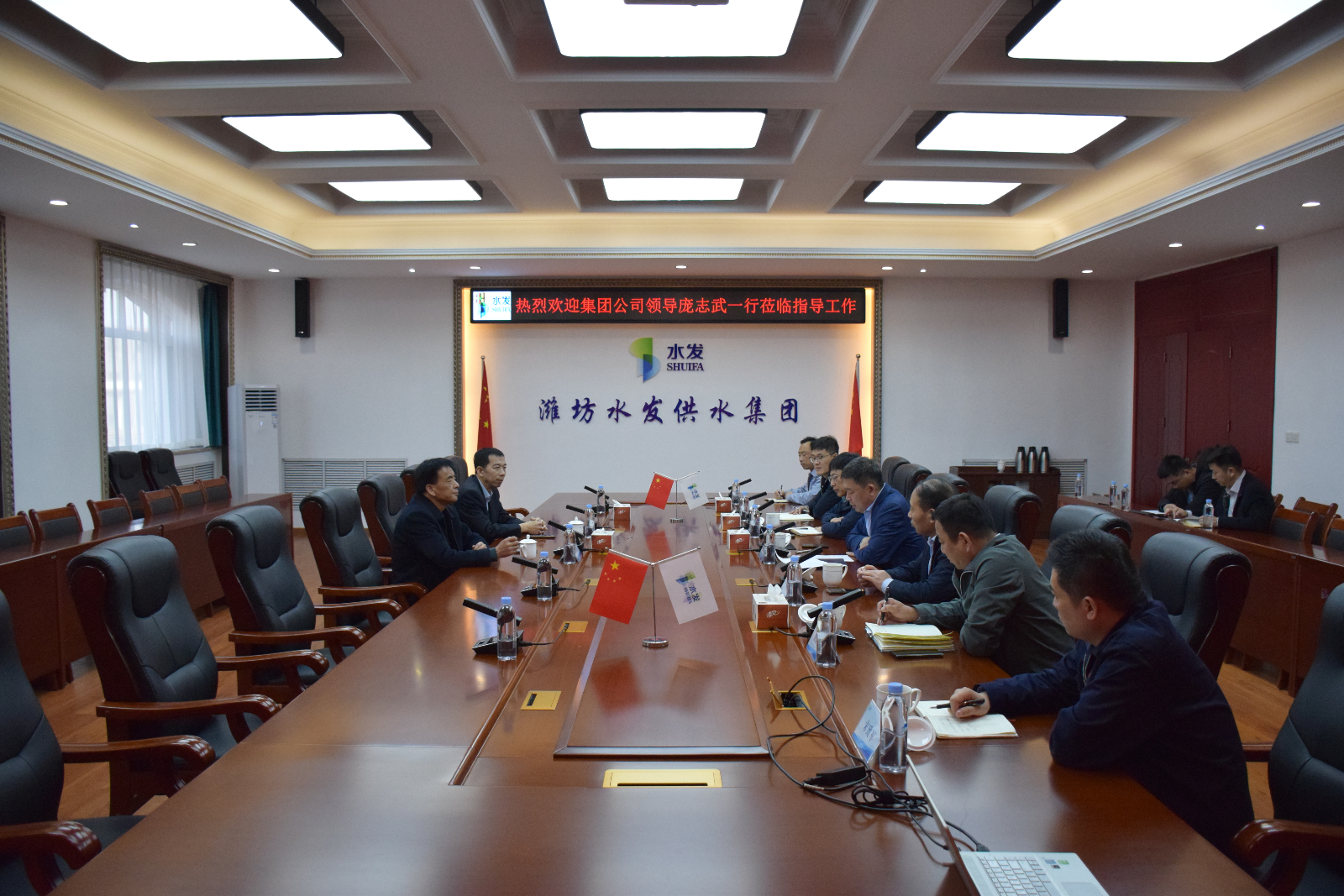 3月14日,水發(fā)水務控股集團有限公司(籌)工會主席龐志武、統(tǒng)戰(zhàn)部副部長盧昌誠一行到濰坊區(qū)域調(diào)研指導工作,水發(fā)水控濰坊區(qū)域總經(jīng)理、供水集團董事長張勇及相關公司負責人參加座談。