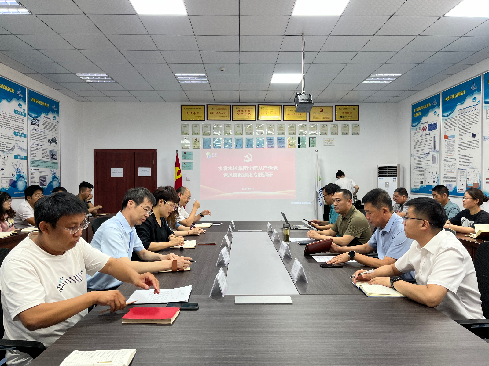 調(diào)研會上,河海公司董事長張莉針對公司基本情況、經(jīng)營情況及下一步工作計劃進行了匯報,全員觀看《反腐倡廉警示教育片》,濰坊區(qū)域公司總經(jīng)理張勇發(fā)言,針對濰坊區(qū)域工作情況進行匯報,對河海公司提出要求,全員強化大局意識,從嚴(yán)治黨。